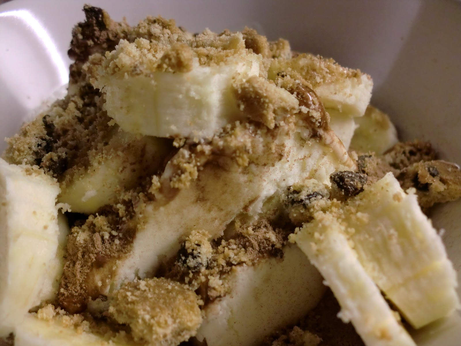 Vi har alltid is i fryseren. Dessuten har vi alltid bananer, sjokoladepulver og småkjeks. Sim-sala-bim! Banansplit!