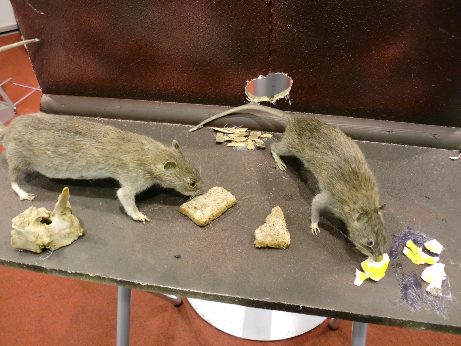 …og et skadedyrfirma, haha. Rottene er ikke levende, men de var veldig livaktige! Effektiv markedsføring!