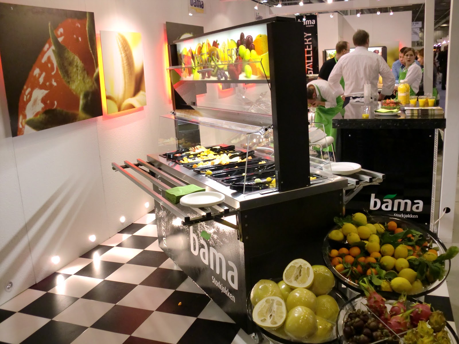 I forrige uke var Søstrene Suse på Gressmessen, et internt arrangement for leverandører til storhusholdninger. Det høres kjempekjedelig ut, men det er det ikke! Messen er nemlig full av folk som leverer spiselige ting til hotell- og restaurantbransjen (og ettersom foreldrene våre driver et hotell, fikk vi være med), og alle disse menneskene vil at du skal prøve produktene deres. Med andre ord kan du smake deg gjennom hele hallen, uten spor av dårlig samvittighet. Årets messe hadde 112 utstillere, og jeg tipper at omtrent to tredjedeler av disse hadde noe de ville ha oss til å smake på, det være seg kaffe, te, øl, vin, vafler, pizza, supper, sauser, gryter, krydder, kaker, konfekt, iskrem eller frukt. Dessuten var de fleste interesserte i å bli kvitt mest mulig av varene sine før messen var over, så de sendte med deg alskens greier før du gikk videre. Det hele ble et gilde uten like!