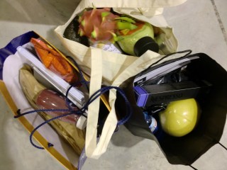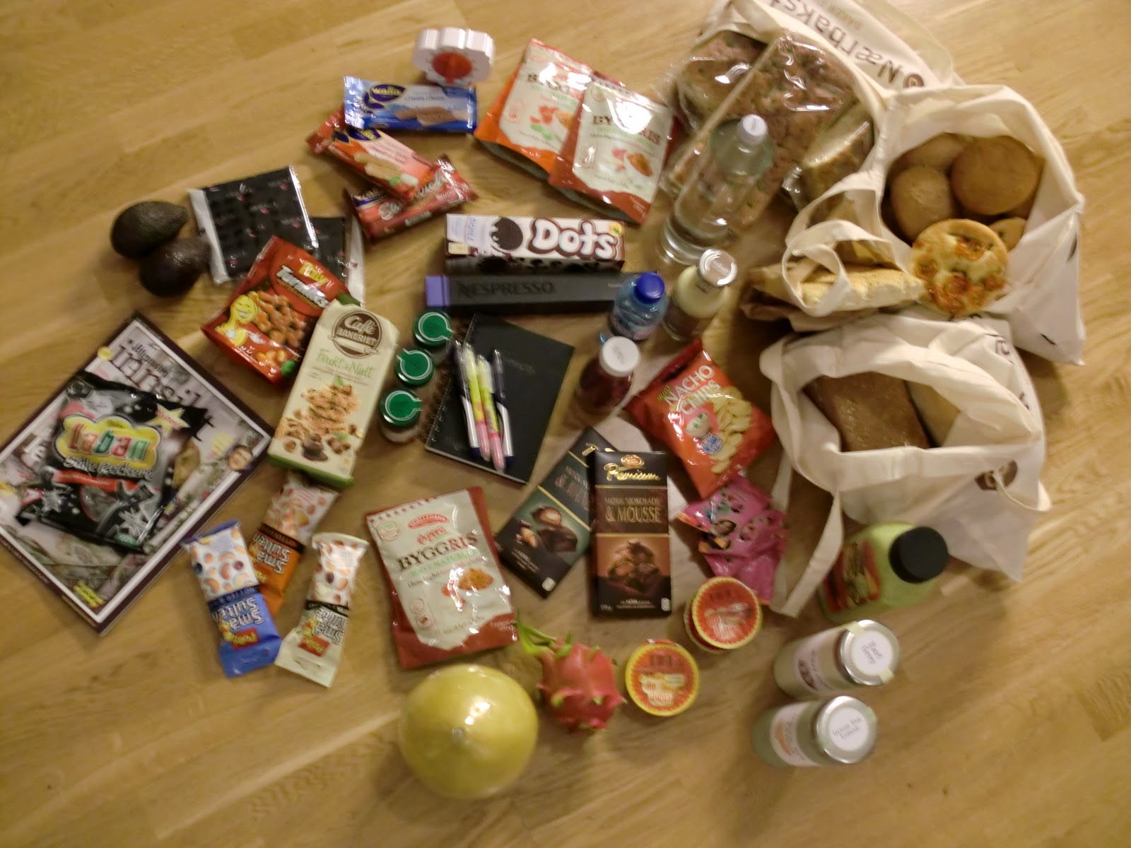 Vi kunne altså rusle rundt og smake på alt vi ville. Jeg var stappmett etter en time, men man har jo alltid plass til en liten makron eller en sjokoladebit, ikke sant? Når messen nærmet seg slutten, begynte utstillerne å dele ut varer i øst og vest. Her er det vi endte opp med å ta med oss hjem: