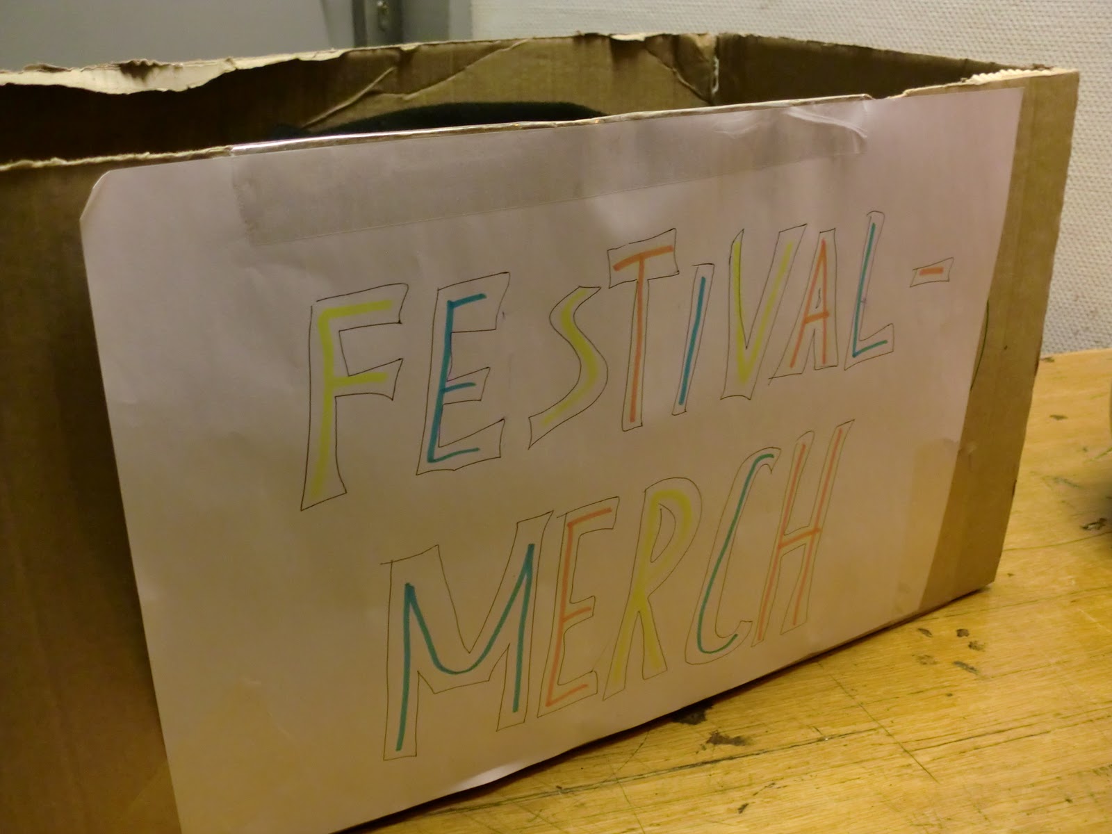 …som etterhvert ble inntatt av band og artister av ulike typer og størrelser. Om man likte det man så, kunne man kjøpe festival-merchandise (fra en eske som inntil samme dag var merket «gjenglemte greier»).