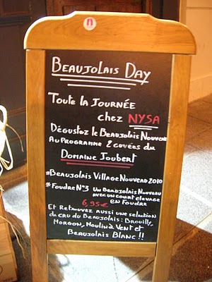 For de av dere som tar et glass vin på søndagskvelden, og for alle som liker livsglade og festlige feiringer: Reis til Frankrike i november. Tredje torsdag i november kommer årets Beaujolais Nouveau, årets ferske vin, og jeg var tilfeldigvis i Paris under fjorårets slipp. Alle restauranter og utsalgssteder med respekt for seg selv hadde egne oppslag, og alle hjerter gledet seg.