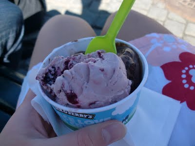 …spist formidabel is fra Ben & Jerry’s på en benk i byen. Jeg hadde bare knær, men frøs ikke det minste.