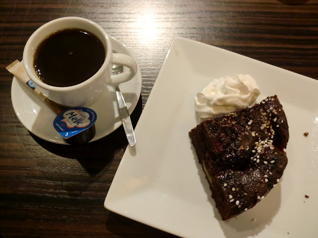 – Nødvendige kaffekopper og store kakebiter på kafé.