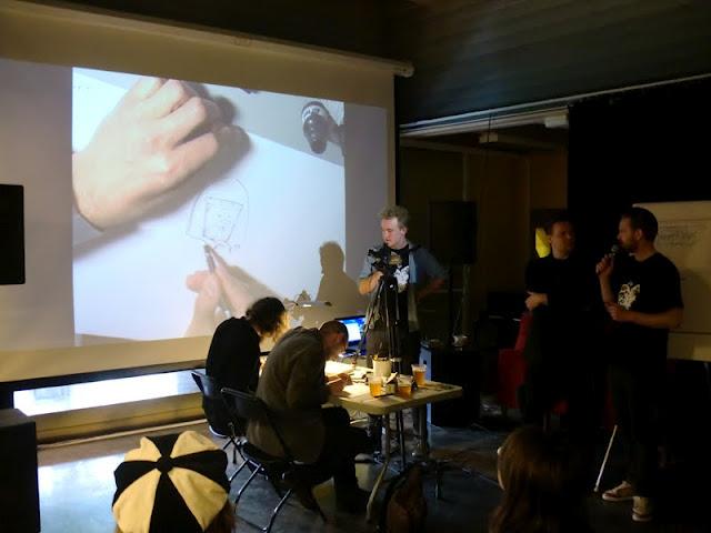 På Schous plass på Grünerløkka var det tegneseriefestival, Oslo Comics Expo, for femte år på rad. Herlig! Jeg traff mange kjente, snakket med nerdete amerikanere og bevitnet en morsom tegneduell. Dessuten beundret jeg det store utvalget på markedet, med stripeserier og grafiske romaner og masse annet fint som jeg ikke har råd til, men så fant jeg noen gi-bort-hefter, og så ble jeg om mulig enda gladere.