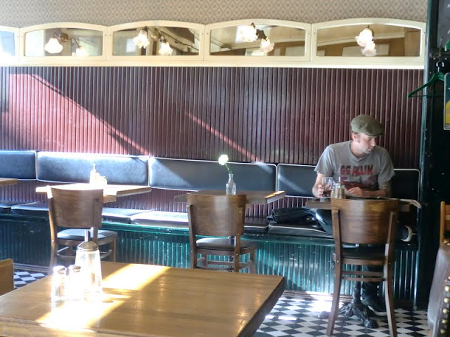 Ved akkurat det bordet hvor han mannen sitter, satt jeg og drakk kaffe med en diktermann jeg aldri hadde møtt før i fjor høst. Det er den eneste gangen jeg har vært der.