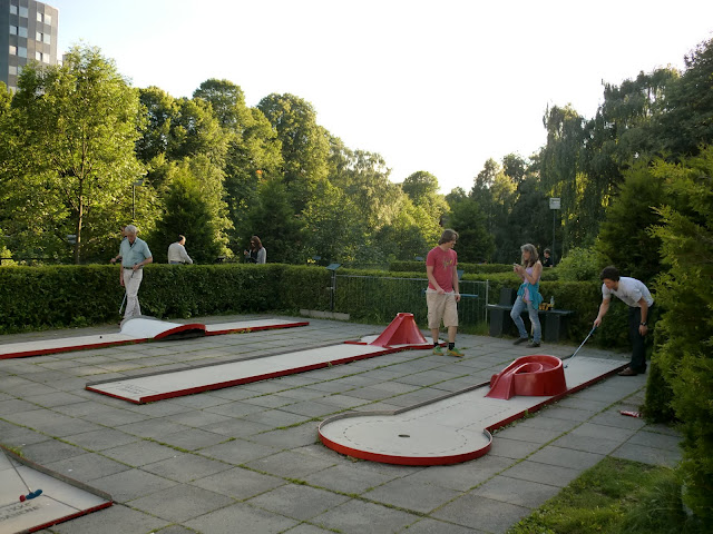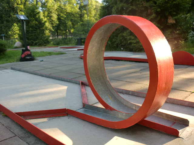 En av våre første dates var faktisk et slag minigolf, så Jonasflotte og jeg tenkte at det var tid for en ny runde, mer enn to år etter. Vi spilte riktignok i påskeferien også, og da ble det uavgjort, så ettersom han vant første gangen, hadde jeg muligheten for utjevning. Det ligger en bane nederst på Grünerløkka, rett ved elven, som får de siste solstrålene på varme sommerkvelder. Nå har vi vunnet en gang hver.