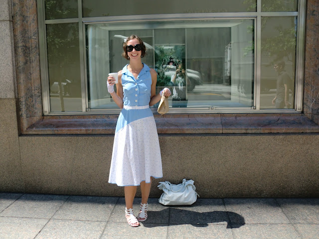Kjolen fikk være med til New York i sommer. Jeg hadde nemlig bestemt at jeg skulle føle meg fin hele ferien igjennom, og jeg føler meg nesten aldri så fin som når jeg har på meg denne! Dessuten hadde jeg en plan for denne kjolen, for at den skulle komme til sin rett. Jeg sto opp tidlig en morgen og fant frem strykejernet på hotellrommet.