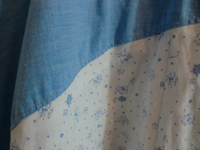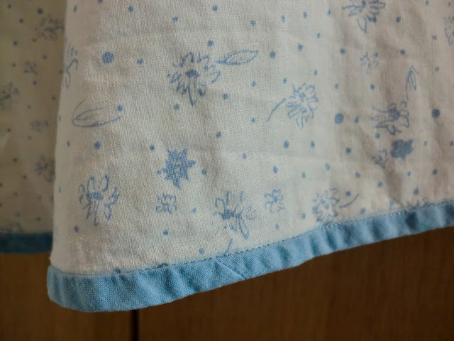 Da min mor var 22 år gammel, sydde hun en blå og blomstrete kjole til seg selv. Det var i 1980. Kjolen var et eksamensprosjekt på Husflidskolen (hihi!), og oppgaven gikk ut på å lage noe nytt med utgangspunkt i noe gammelt. Min mor fikk et forkle av sin mor, og hun tok symaskinen fatt, og mer enn tredve år senere er resultatet like fint.