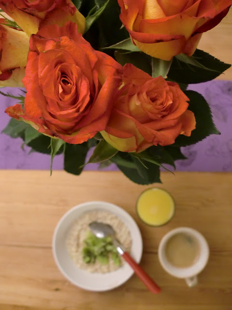 Om man er så heldig at man har en kjæreste som iblant kommer innom med blomster, kan man nyte synet og lukten av dem ved frokostbordet. Hvis ikke, kan man kjøpe dem selv. Uansett er det fint med et lass kiwi på havregrøten.