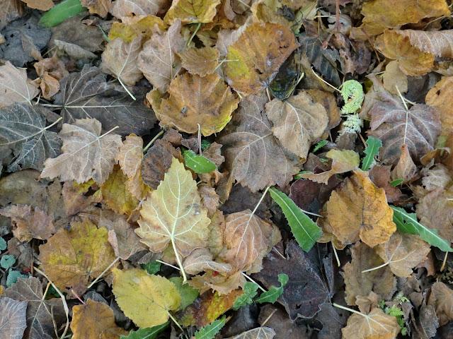 – Restene av høstfarger, nå gjerne på bakken i stedet for på trær og busker, og pyntet med frost.