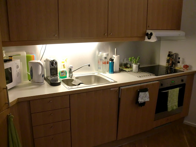 Til venstre finner man kjøkkenkroken. Der bor matgleden og kaffemaskinen.