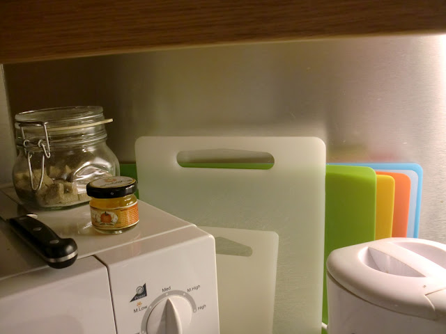 Vi har innebygget kjøleskap, og savnet magnet-muligheten ganske fort. Løsningen ble en tavle, som brukes mye.