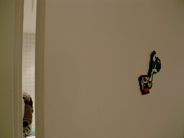 Om man snur seg rundt, kan man se etter Yoshi. Han viser nemlig vei til badet…