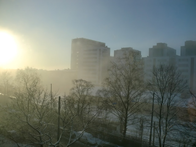 …og hvordan utsikten fra kontoret mitt ble forvandlet til et ullent hav av blått og grått og sol og snø.