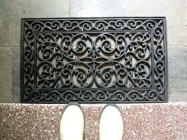 Dessuten hadde jeg støvler på, som fikk posere sammen med denne pene dørmatten jeg kom over.