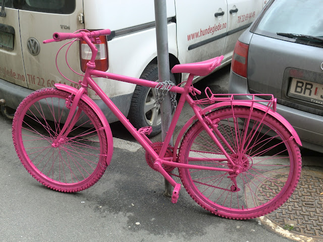 I tillegg til rosa blomster og ballonger, så jeg en særdeles rosa sykkel…