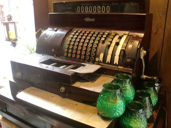 …og det gamle kassaapparatet sto ved døren og holdt tellingen på hvem som kom og gikk…