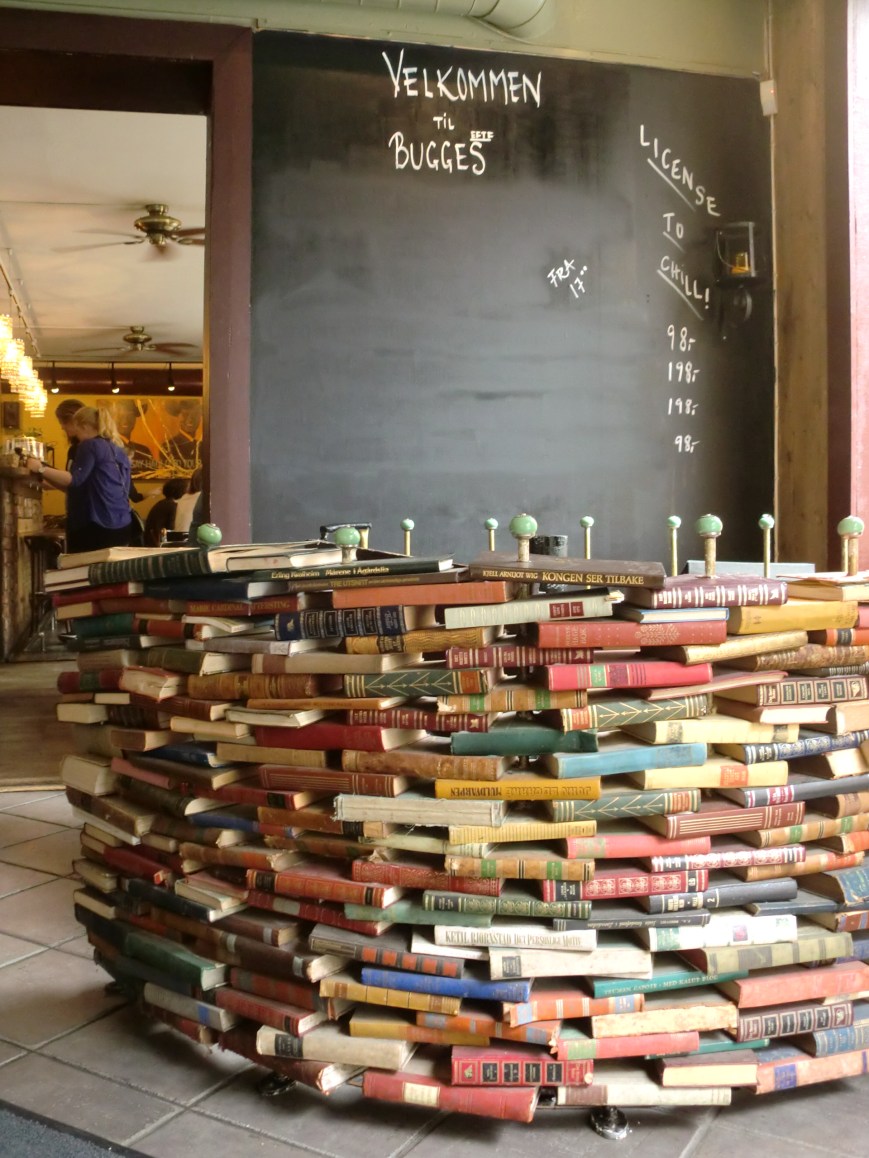 Så fint! Vi snubla innom for noen uker siden da vi hadde miniosloferie, men var så mette fra før at vi ikke spiste der – selv om jeg fikk fryktelig lyst på falafelburgeren da jeg hørte den bli servert på et nabobord. Og selvfølgelig begynte jeg å tenke ut hvordan jeg kan lage et slikt trappegelender. Eller kanskje en skillevegg av bøker? Det må jo gå an å få til? :)