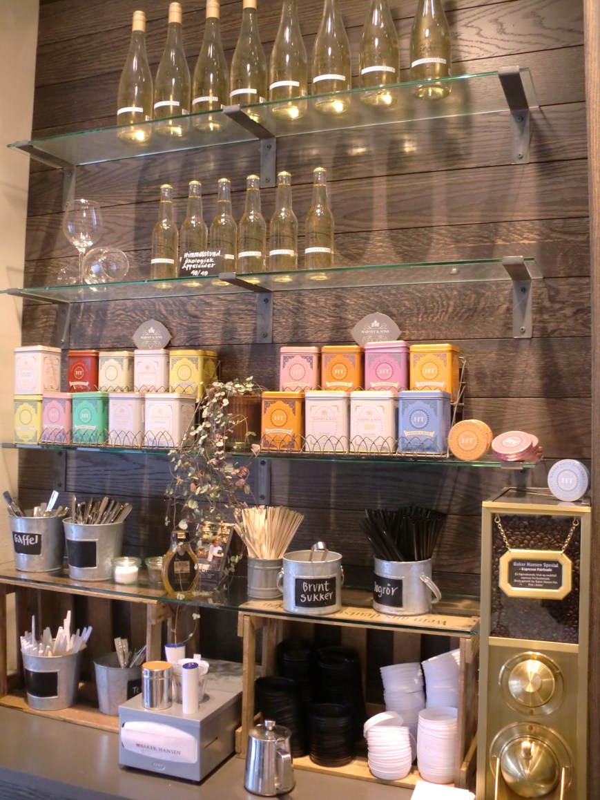 Lokalene var lyse og luftige i rustikk stil, og på veggene hang finurlige sitater og fotografier i svart/hvitt. Farger var det likevel nok av, for disken og hyllene var fulle av morsomme importvarer og stilige retroprodukter. Te, kaffe, krydder, bakervarer, lemonade, iskrem og urter om hverandre. Alt fristet, og jeg endte opp med å bruke lang tid på å snike rundt og se, og på å avgjøre hva jeg skulle kjøpe med meg videre. Det er forfriskende å se at en etablert kjede vet å følge med i tiden og fornye seg.
