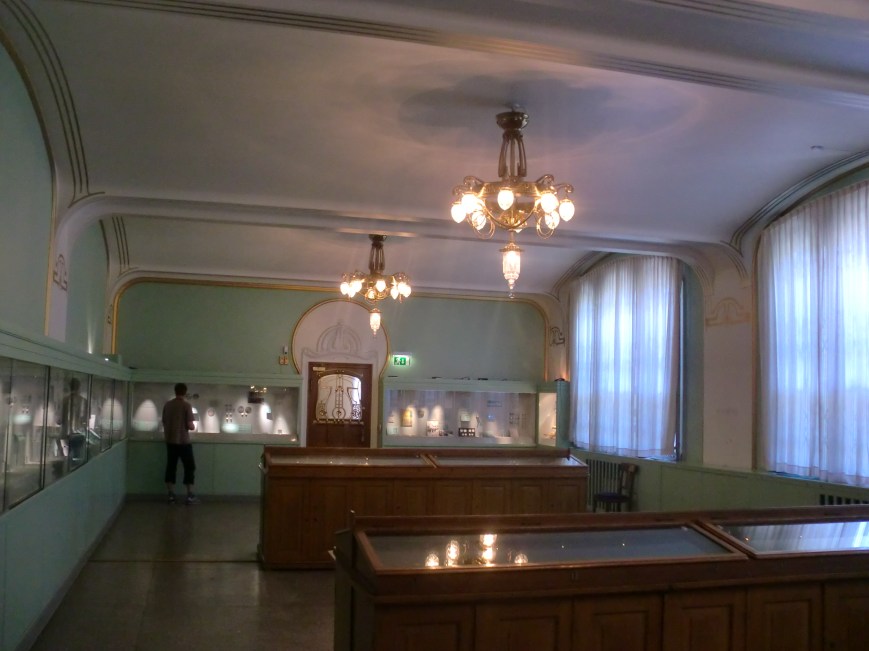 Det første rommet man kommer inn i, har dessuten utsmykninger i form av speil og malerier og treverk som dekker den øverste delen av veggen. Det ser gammelt og ærverdig ut.