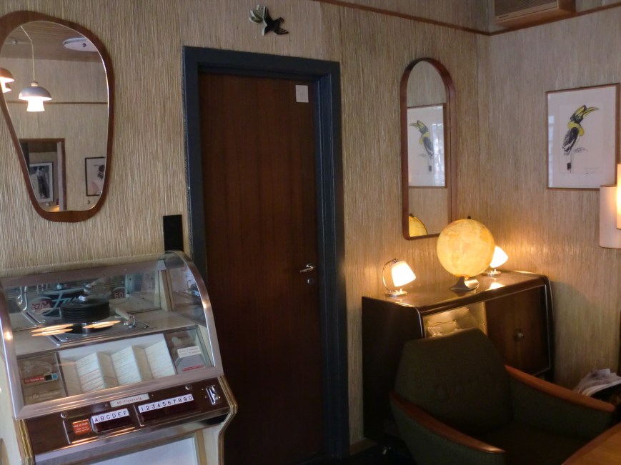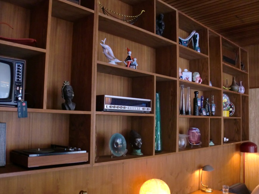 Dessuten rommer lokalet en interiørbutikk, så alt er til salgs, for eksempel retropynten i hyllene.