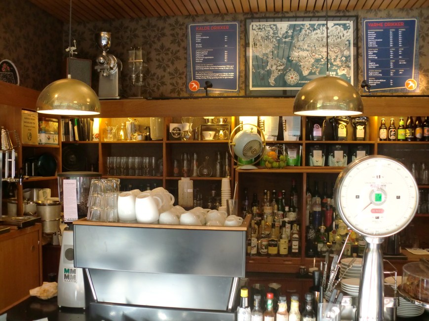 Vi fant ut at vi dessuten hadde lyst på og behov for litt kaffe. Ettersom denne dagen sto i turismens tegn, og vi ville spise og drikke kun på steder som man gjerne hører folk anbefale Oslo-besøkende, valgte vi oss Fuglen som kaffested. Det ligger i området, og det er en favoritt for min del, men kjæresten min hadde ikke vært der.
