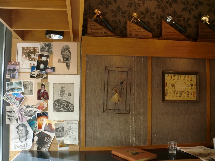 Lokalet er nostalgisk og sjarmerende. Veggene rammer inn stemningen med strietapet, gyldne farger og gamle skilt, og på en hylle står en rekke utmerkelser som gjør det klart at de bak disken vet hva de holder på med.