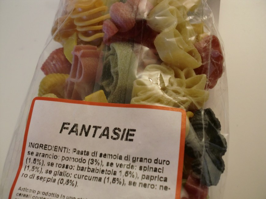 Nå begynner stadig flere trær å bli gule, og himmelen er klar og blå, og jeg fikk lyst til å gjøre noe ekstra ut av lunsjen for å feire fredagen. Jeg fant frem en pastapakke som min franske brevvenn Bruno sendte meg for en stund siden, og som er kjøpt i Italia. Den er i slekt med denne, som jeg viste frem på den forrige bloggen, men fantasipasta tar det til nye høyder!