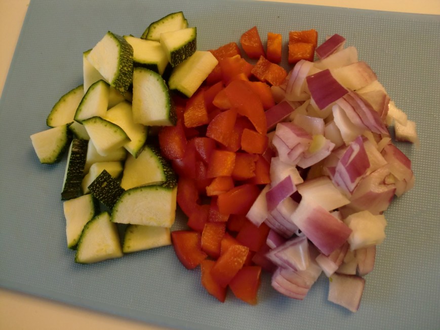 Med pannestekte grønnsaker, ruccolasalsa og frisk basilikum ble det en god og gøyal lunsj.