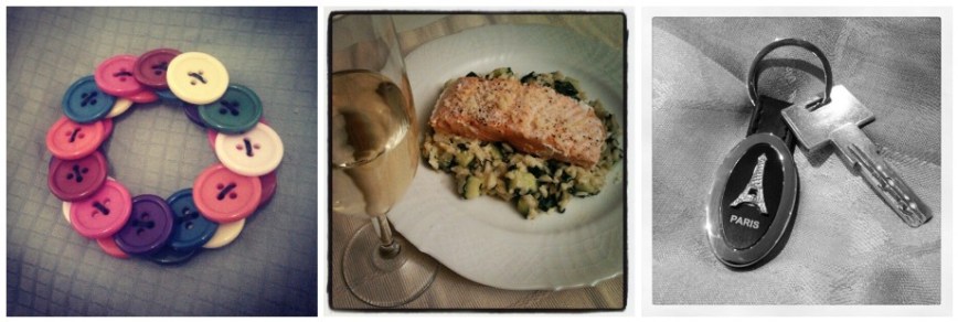 Et armbånd med søte knapper, en siste kjærestemiddag (kvelden før jeg dro), en nøkkel til et nytt liv.