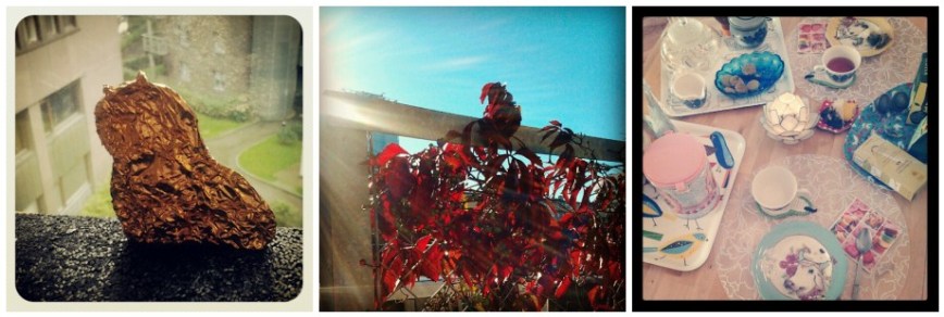 En provisorisk katt i vinduskarmen, fint høstløv på Majorstua, koselig tebesøk hos Ina.