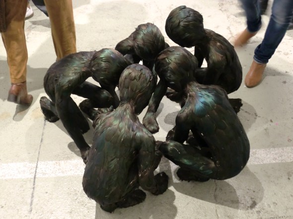 Dette verket var blant dem som gjorde størst inntrykk. Det var plassert midt på gulvet, og mange ble stående lenge for å studere det. Det var noe forstyrrende ved disse figurene, som ser ut og «oppfører seg» som barn, men som er helt og holdent dekket av fjær. Så sært!