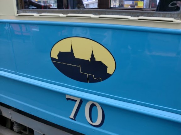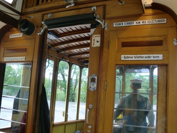 Jeg elsker overraskelser, og jeg elsker veterankjøretøy, og jeg ble så satt ut og så glad! Jeg fniste som en fjortenåring da jeg fulgte konduktørens oppfordring om å «ta plass» i den gamle trikken. Flere konduktører i fine uniformer sto rundt omkring på sine små plattformer, og blåste i fløyter og vinket med flagg, og annonserte stoppesteder som ikke lenger er i bruk. Inne var det polert tre, originale skilt og andre sjarmerende detaljer, og alle så seg rundt og smilte. Jeg tok trikken bare et par holdeplasser, men rakk heldigvis å knipse noen bilder både ute og inne før turen var over.