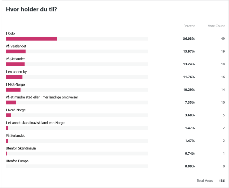 Mange av dere bor i Oslo og ellers på Østlandet, stort sett i urbane strøk.
