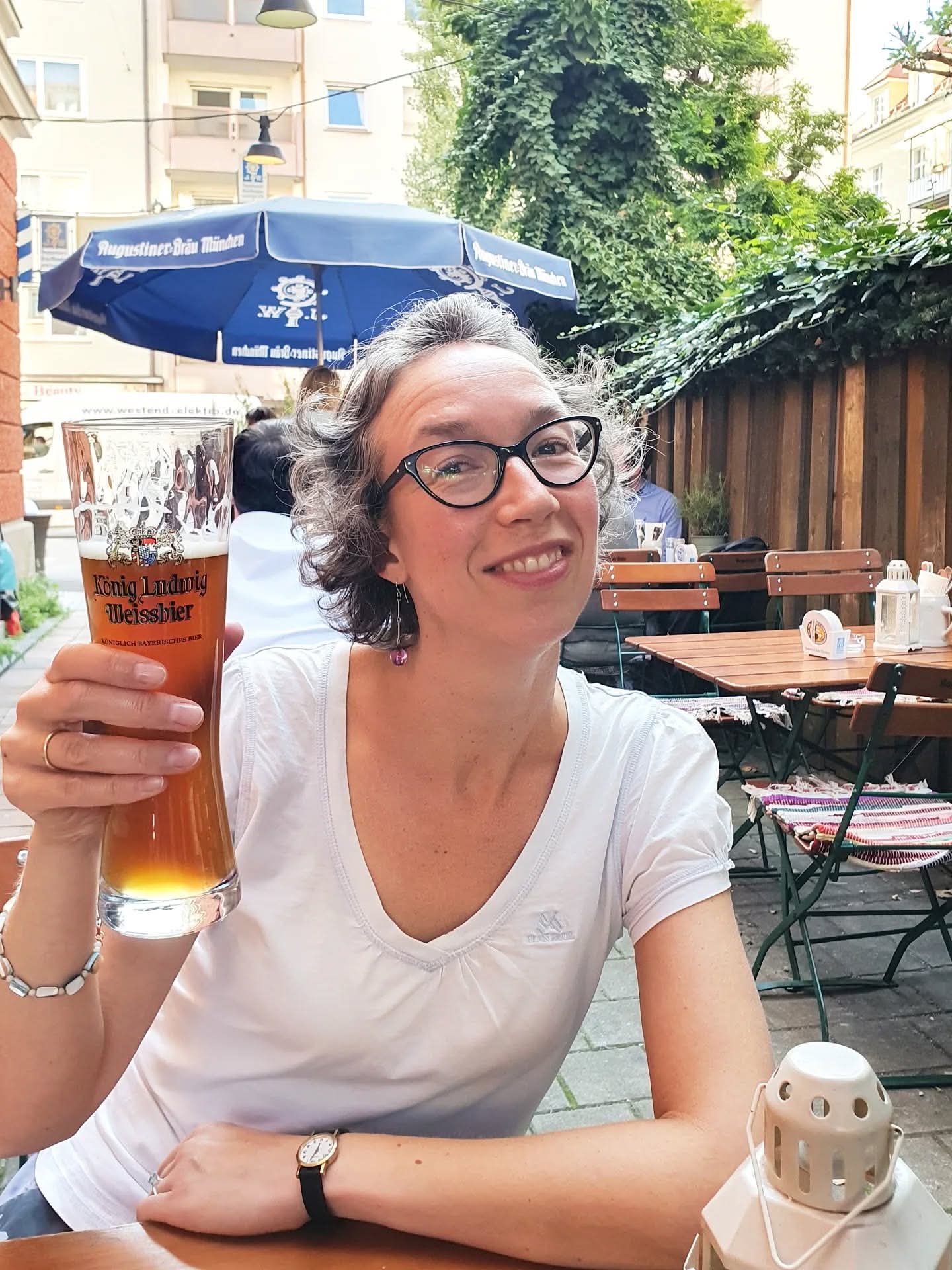 Her har jeg vært våken i 36 timer i strekk, hahahuff, men dette var vår første øl som München-innbyggere!