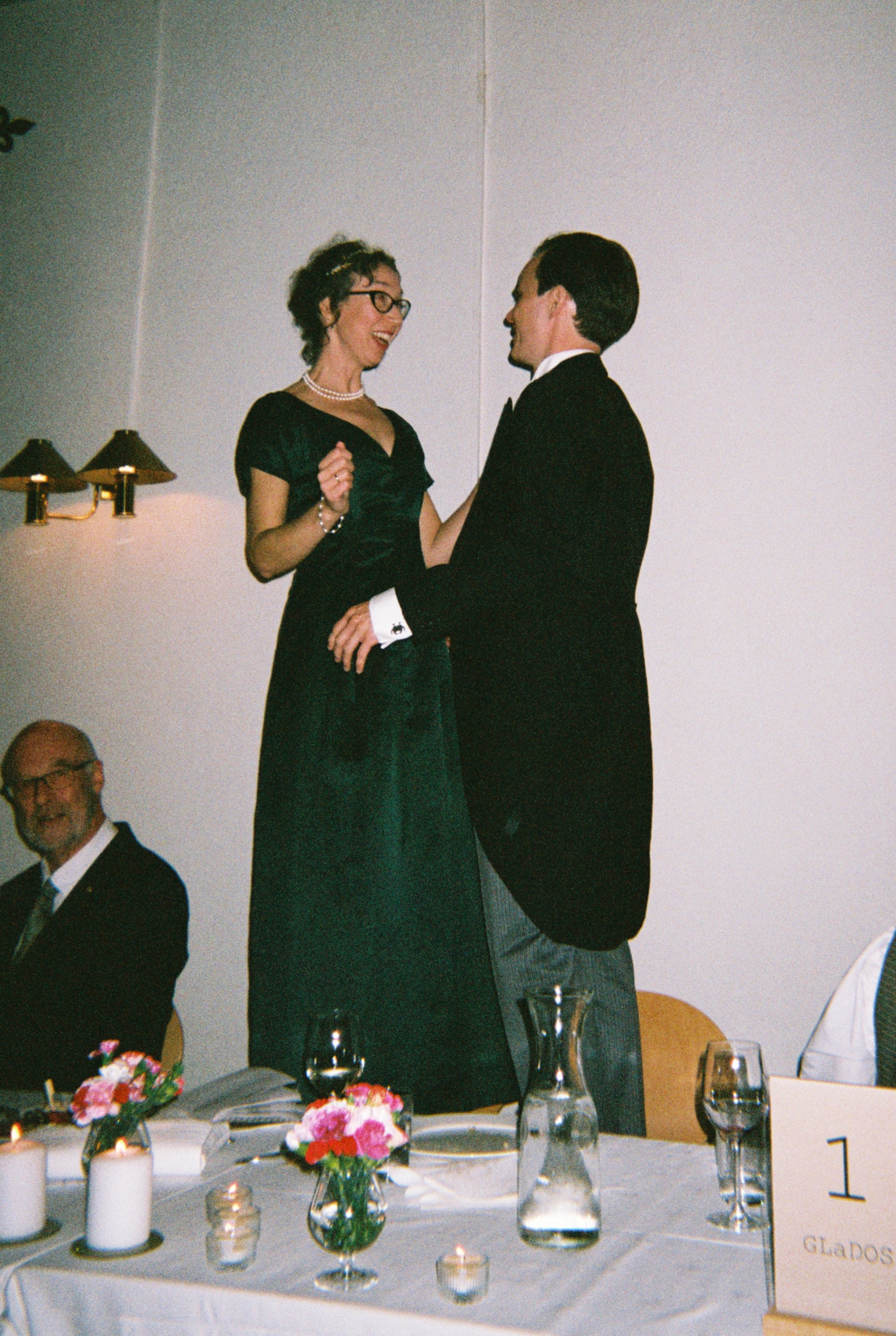 MiddagenVi slapp ikke unna klirring i glassene og tramping i gulvet, nei. Det ble altså både kyss på stolene…
