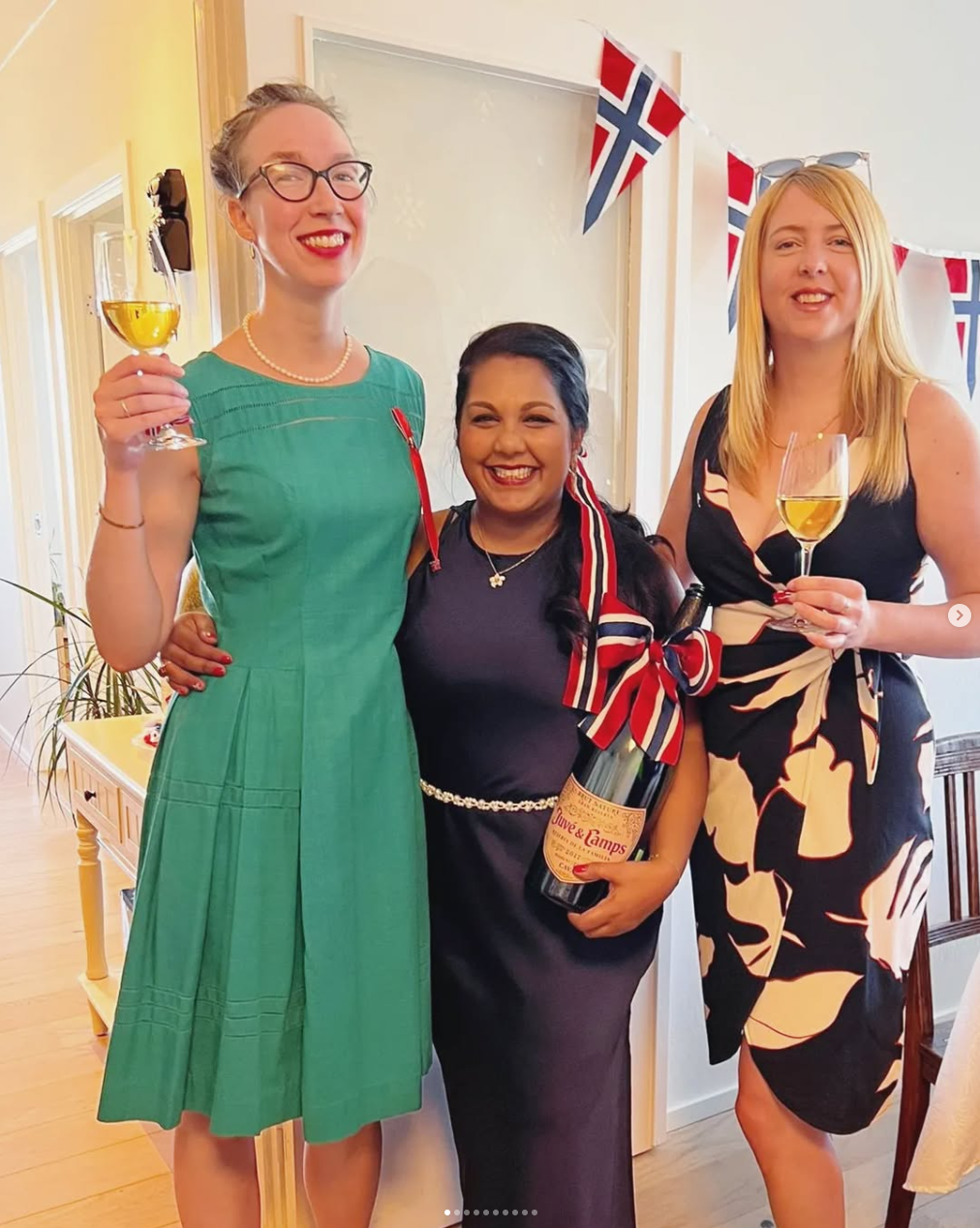 Hei og hå! Sånn så jeg ut tidligere i februar, for nå er vi à jour! Hittil i år har Jonasflotte og jeg blant annet vært på hyttetur, besøkt venner i Brussel, hatt tre sosiale samlinger hjemme hos oss og feiret forlovelsesdagen vår (en dato vi fortsatt markerer, for hvorfor ikke?) med ostekake og champagne. Selv har jeg for eksempel løst dagens Wordle for tusende gang og blitt intervjuet om vin på en drikkepodcast. I disse dager tekster jeg for Netflix og NRK, og jeg føler meg heldig som får det til å gå rundt som frilanser, og som har det så bra på alle måter. Vi har begynt å planlegge vårens pub-til-pub, og vi skal i to bryllup i England i år, ett i april og ett i november. I ettermiddag skal vi ta en skål, og alle er invitert, som nevnt her.